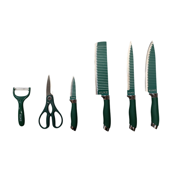 Ergonomic Design: Each piece is fitted with a comfortable, dark green handle designed for a secure, non-slip grip and balanced feel, ensuring safe and fatigue-free chopping and slicing.