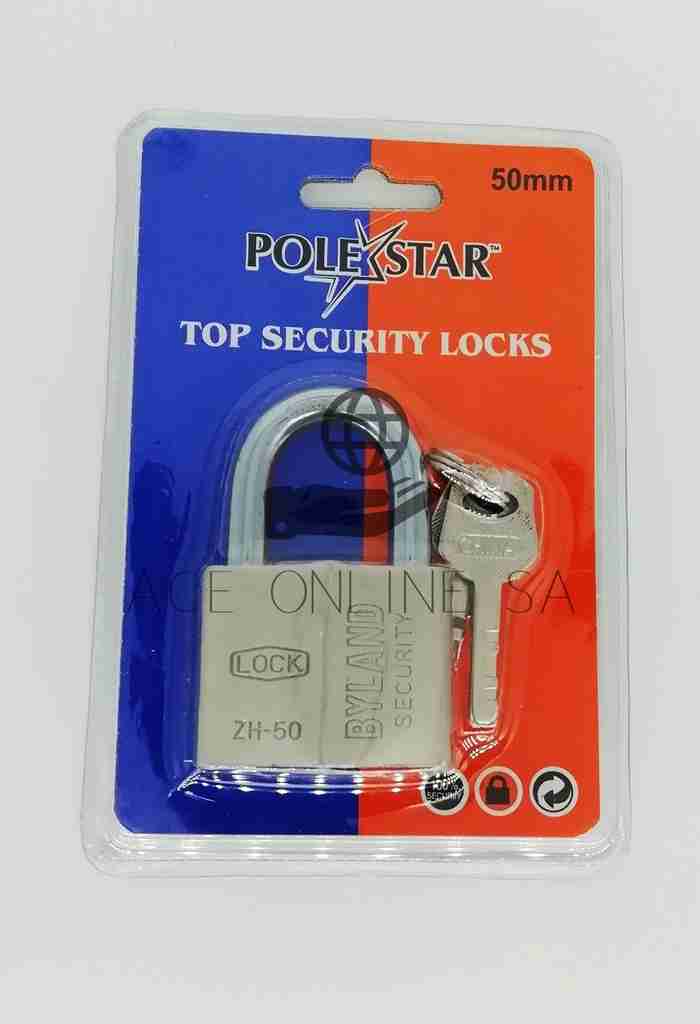 - Heavy duty solid steel body with hardened steel shackle