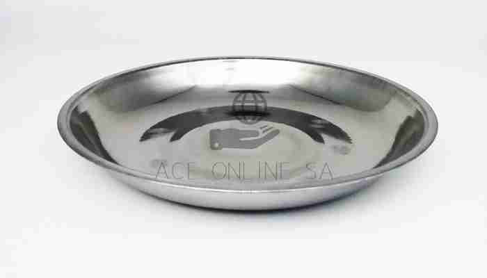 22cm tray made of stainless steel for serving .